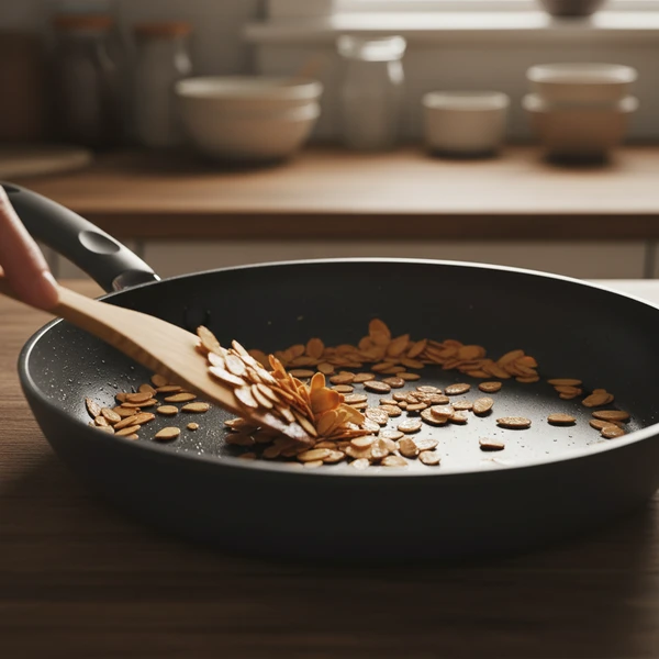 Heat a dry skillet over medium heat—no oil needed. Add 1/3 cup sliced almonds in a single layer and toast, shaking pan frequently, for 3-5 minutes until fragrant with golden edges (not uniformly browned). Watch closely as almonds go from perfect to burnt in seconds. Immediately transfer to a plate to cool completely, stopping residual cooking for maximum crunch preservation.