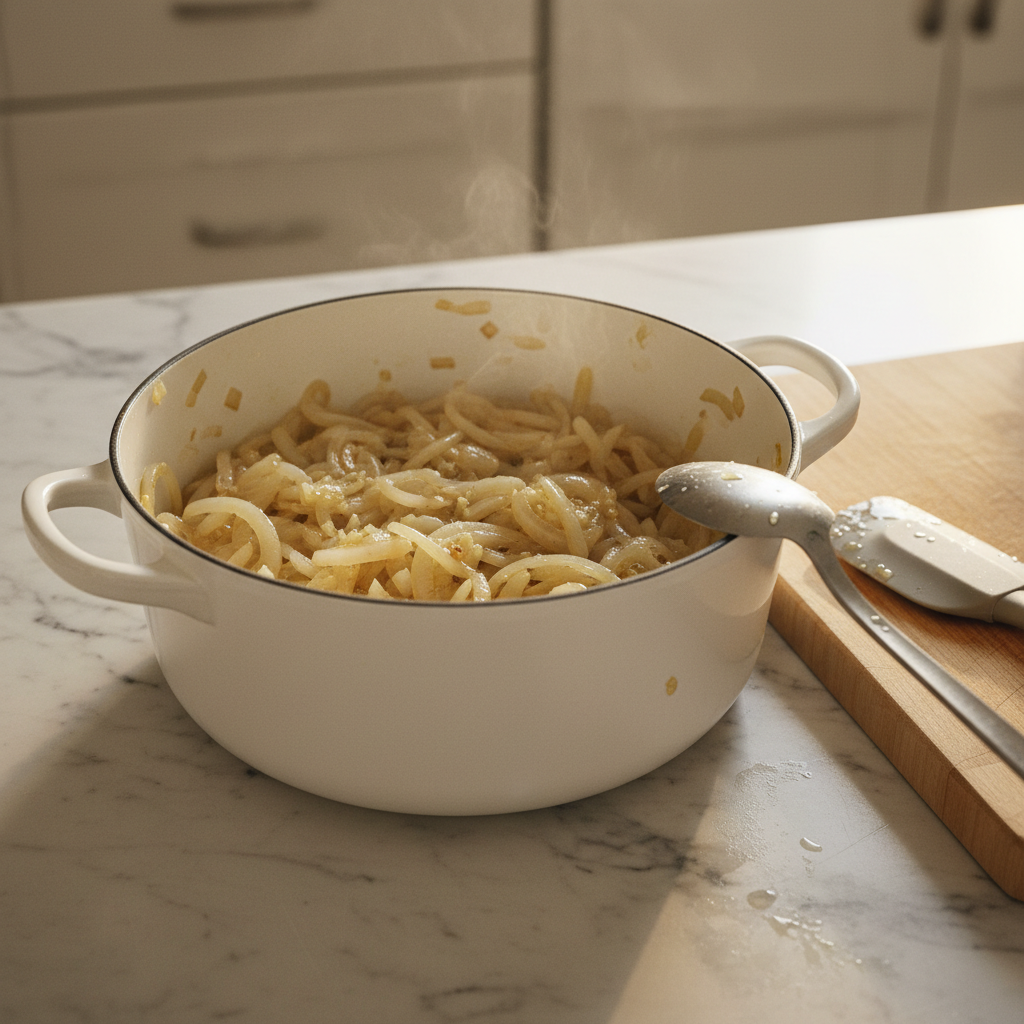 Heat the olive oil in your large pot over medium heat until it shimmers slightly. Add the diced onion and cook for 3-4 minutes until it begins to soften and become translucent. Next, add the minced garlic and cook for another 30 seconds until fragrant, being careful not to let it brown or burn as this can create a bitter taste. The combination of onion and garlic creates the aromatic foundation for our golumpki soup, infusing the broth with traditional Polish flavors that will deepen as the soup cooks. Stir frequently during this process to ensure even cooking and to prevent the garlic from sticking to the bottom of the pot.