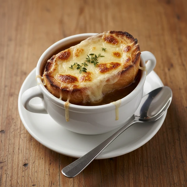 Let the soups rest for 3–5 minutes so the bubbling subsides and the cheese sets slightly. Serve on small plates or saucers to protect the table, warning everyone about the hot bowls.