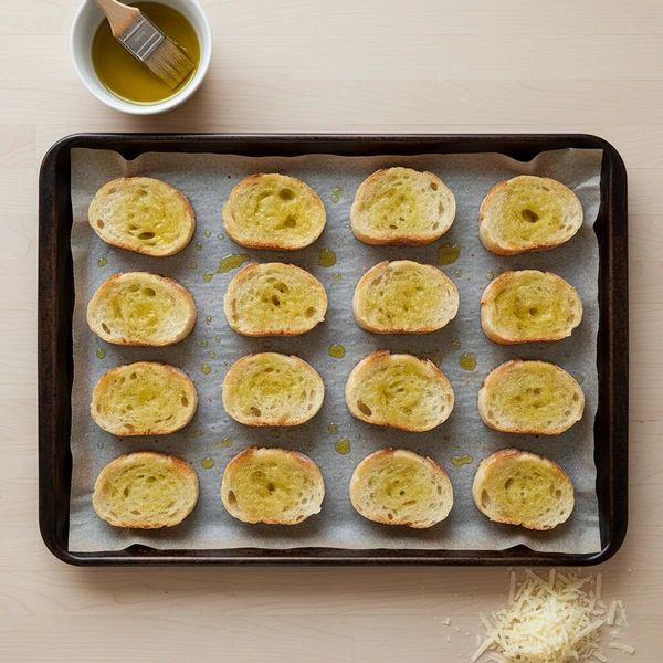 While the soup simmers, preheat the oven to 375°F (190°C). Arrange baguette slices on a baking sheet in a single layer. Lightly brush both sides with olive oil or spread thinly with butter.