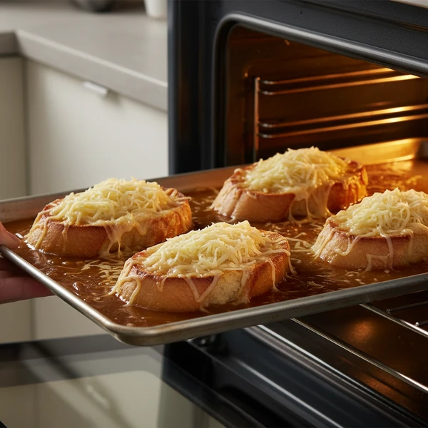 A: Yes. Cook the soup completely, cool, and refrigerate for 3–5 days, or freeze in airtight containers for up to 3 months. Reheat on the stove, then add toasted bread and broiled cheese just before serving so the texture stays perfect.