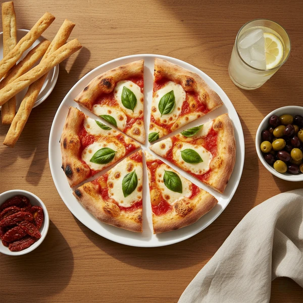 Margherita pizza pairs beautifully with fresh salads like arugula with lemon vinaigrette, a light Caprese salad, or even a side of roasted vegetables. For drinks, try a sparkling water with lemon, a light Italian wine like Pinot Grigio, or a refreshing iced tea.