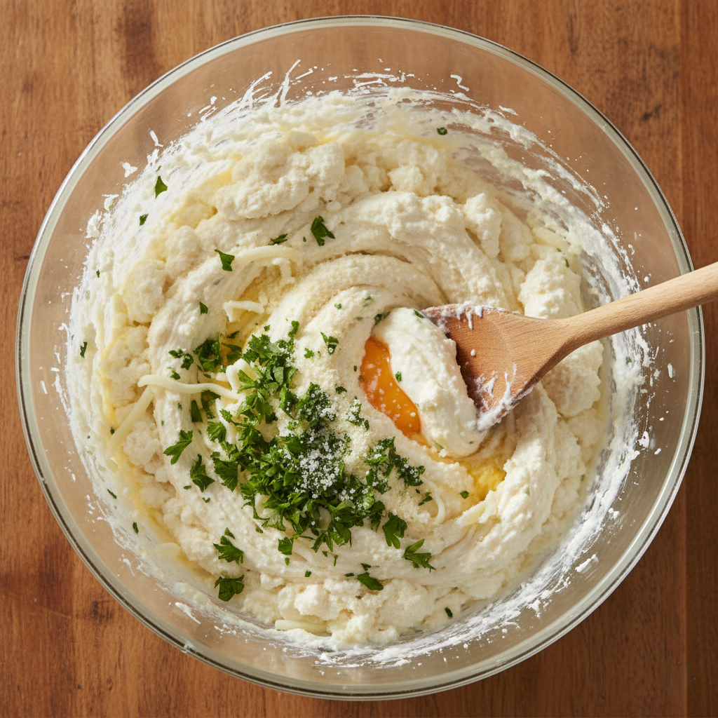 - 1 large egg + 1/2 tsp salt (binds ricotta perfectly)