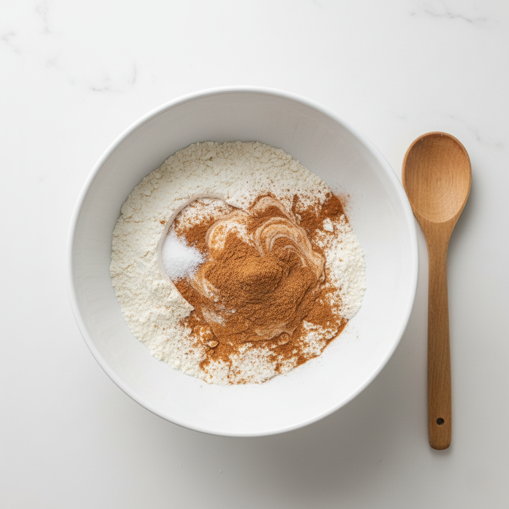 In a medium mixing bowl, measure 1 3/4 cups all-purpose flour, 1 tsp baking soda, 1/2 tsp fine salt, and 1/2 tsp ground cinnamon. Using a whisk, vigorously stir these dry components together for 20-30 seconds until completely uniform—this thorough blending distributes the leavening agent evenly, eliminates potential flavor pockets, and prevents unsightly tunneling or uneven rise in your loaf.