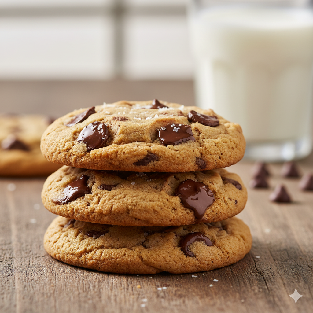 Cookies firm completely on rack (15-20 min)—resist eating warm! Crisp edges + chewy centers + melty chocolate pools + salty finish = bakery perfection. Store airtight 3-5 days or freeze 2 months; crispness improves day 2 as flavors meld.