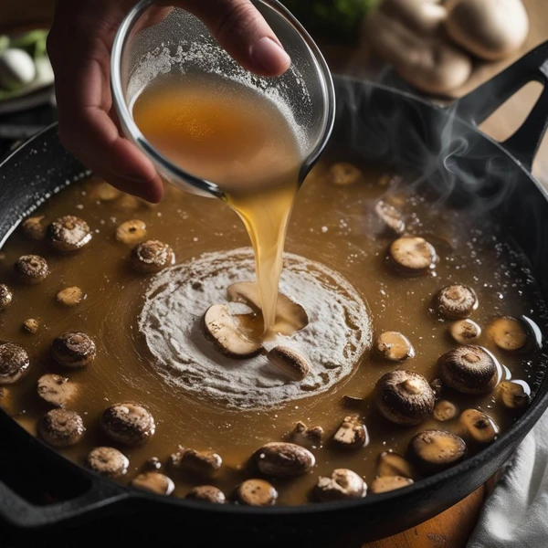 Once the mushrooms are beautifully browned, sprinkle the all-purpose flour over them. Stir continuously for about one minute. This step cooks out the raw flour taste and creates a thickening agent called a roux with the fats in the pot. After the flour is incorporated, slowly pour in the vegetable broth, stirring constantly to prevent any lumps from forming. Scrape the bottom of the pot to release any flavorful browned bits. Bring the mixture to a gentle simmer and let it cook for about 5 minutes. You will notice the soup start to thicken into a rich, gravy-like consistency.