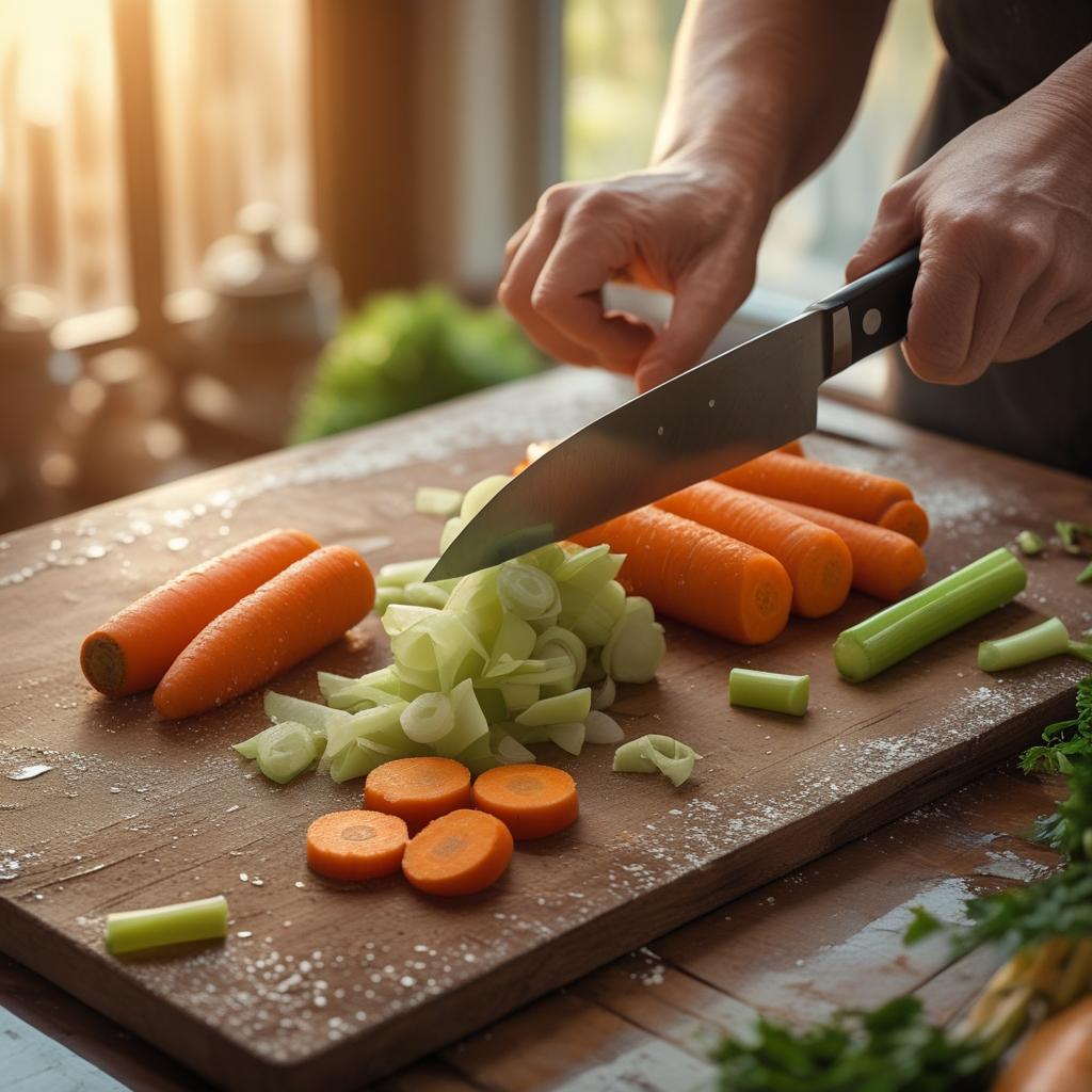 Set out your large soup pot and gather your prep tools. Wash and dry the vegetables. Slice carrots and celery into even coins and half-moons so they cook uniformly. Chop the yellow onion and snip green beans into bite-size pieces. Break cauliflower into small florets. Keep garlic minced finely. Uniform chopping ensures your vegetable soup cooks evenly and each bite has a pleasant texture. If you prefer a thicker soup, chop the veggies a bit smaller. For a chunkier feel, keep them larger. Prep everything before turning on the burner so the cooking process flows smoothly.