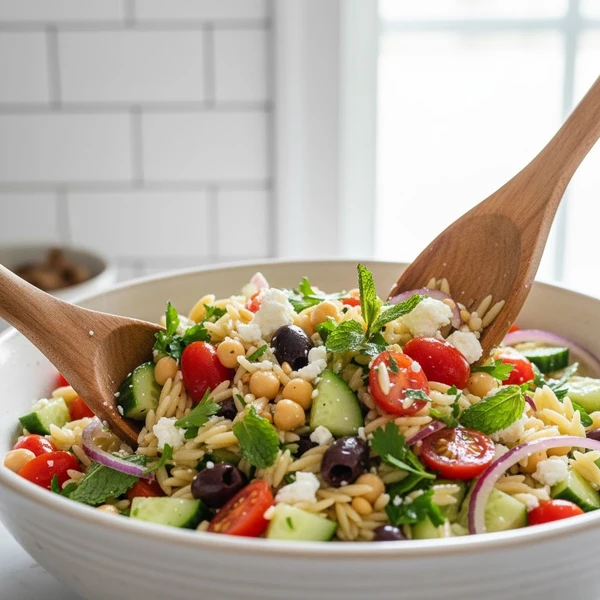 Colorful, zesty, and packed with wholesome ingredients—this Mediterranean orzo salad brings together tender pasta pearls, crisp vegetables, tangy feta, and briny olives in a bright lemon-herb vinaigrette, ready in just 20 minutes. The orzo’s rice-like shape soaks up the dressing beautifully while staying tender, providing the perfect base for this refreshing dish. This salad is an excellent way to add freshness and brightness to your meal rotation, offering vibrant flavors and balanced textures that are perfect for both quick lunches and satisfying dinners.