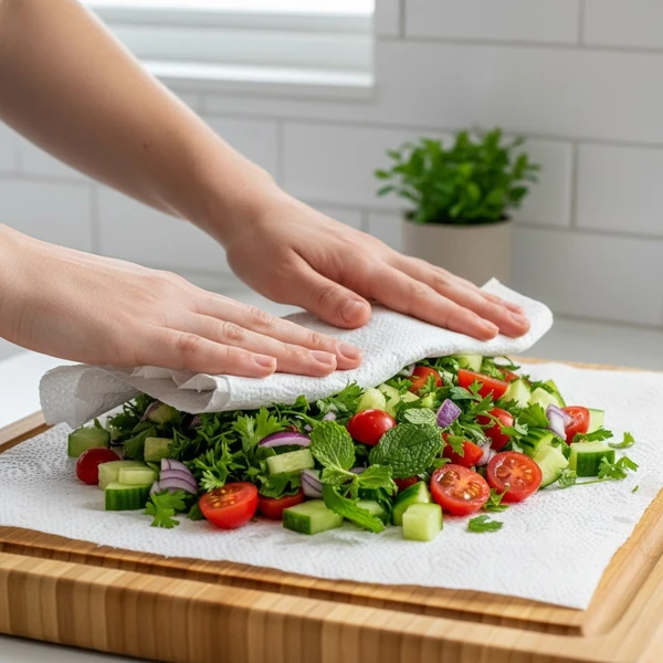 - Pat all vegetables dry with paper towels or use a salad spinner to remove excess moisture, which ensures the vinaigrette adheres properly without wilting the salad prematurely.